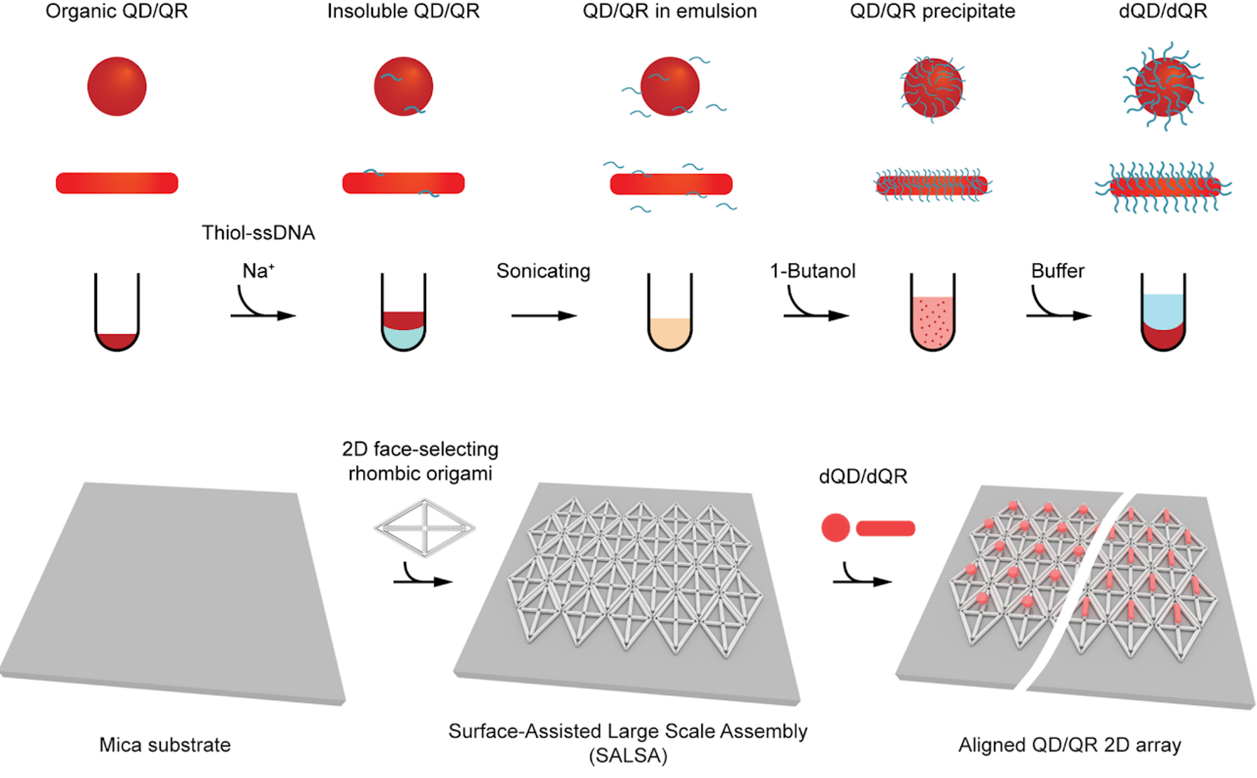 MIT engineers developed a new way to create these arrays, by scaffolding quantum rods onto patterned DNA.